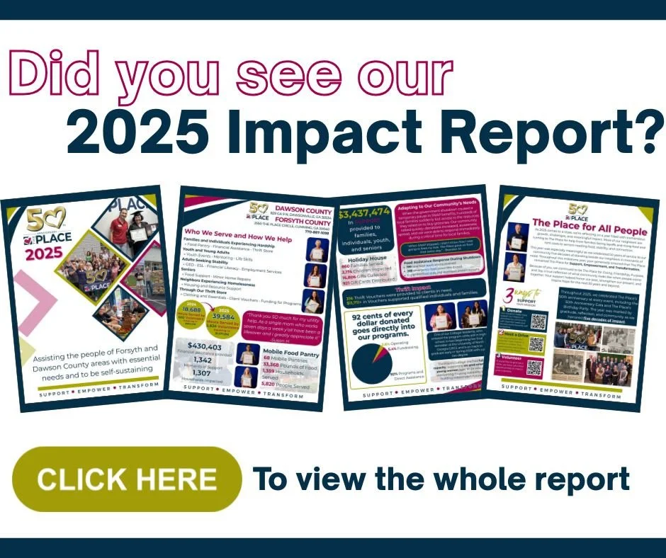 Hearts of Impact is our monthly giving community. When you join, you help The Place be there for families in Forsyth and Dawson counties—not just once, but all year long.